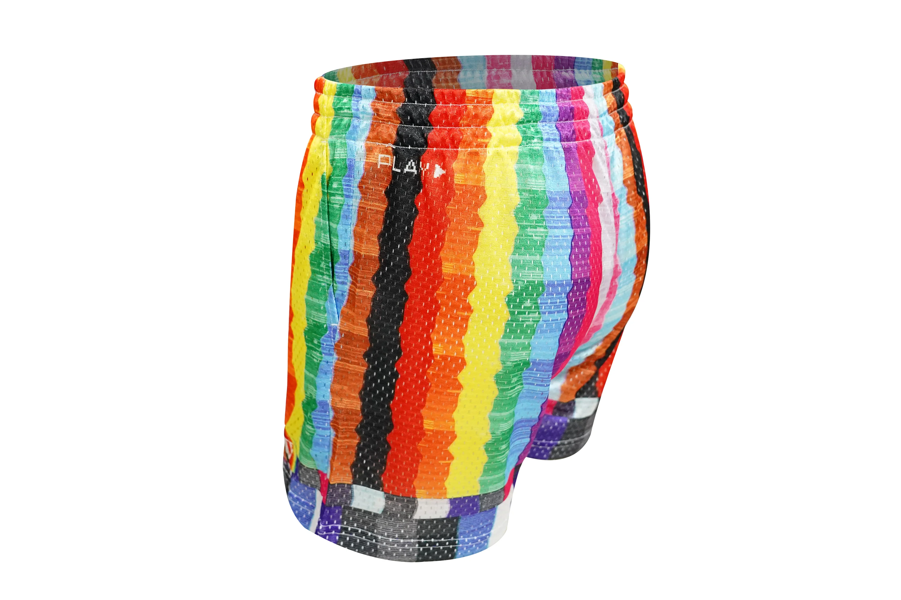 Show your pride in these retro cut comfortable short shorts. They are perfect to show up and show out at pride, a festival, beach, or just every day wear.