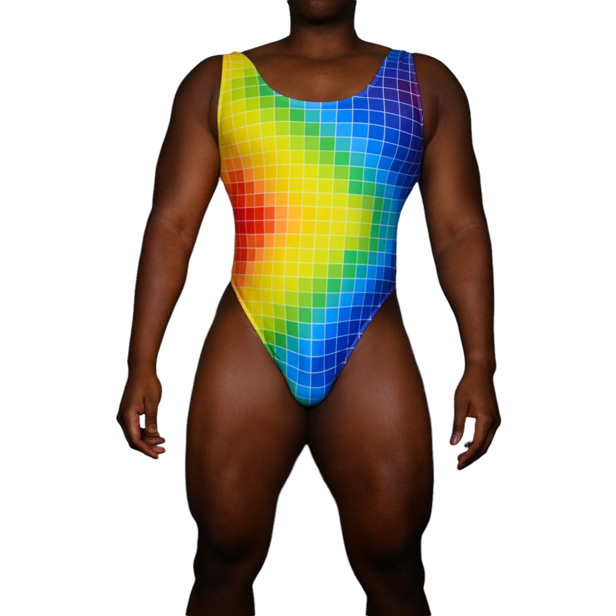 show off your pride in this form fitting, thong backed bodysuit